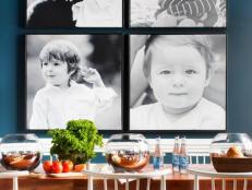 2. In the back piece of each clamp, drill a pilot hole large enough for a 1½-inch lag bolt to pass through, and then use a drill with a spade bit to make a countersink hole so the bolt head is recessed. Attach a sawtooth hanger to the same side as the bolt head for hanging.